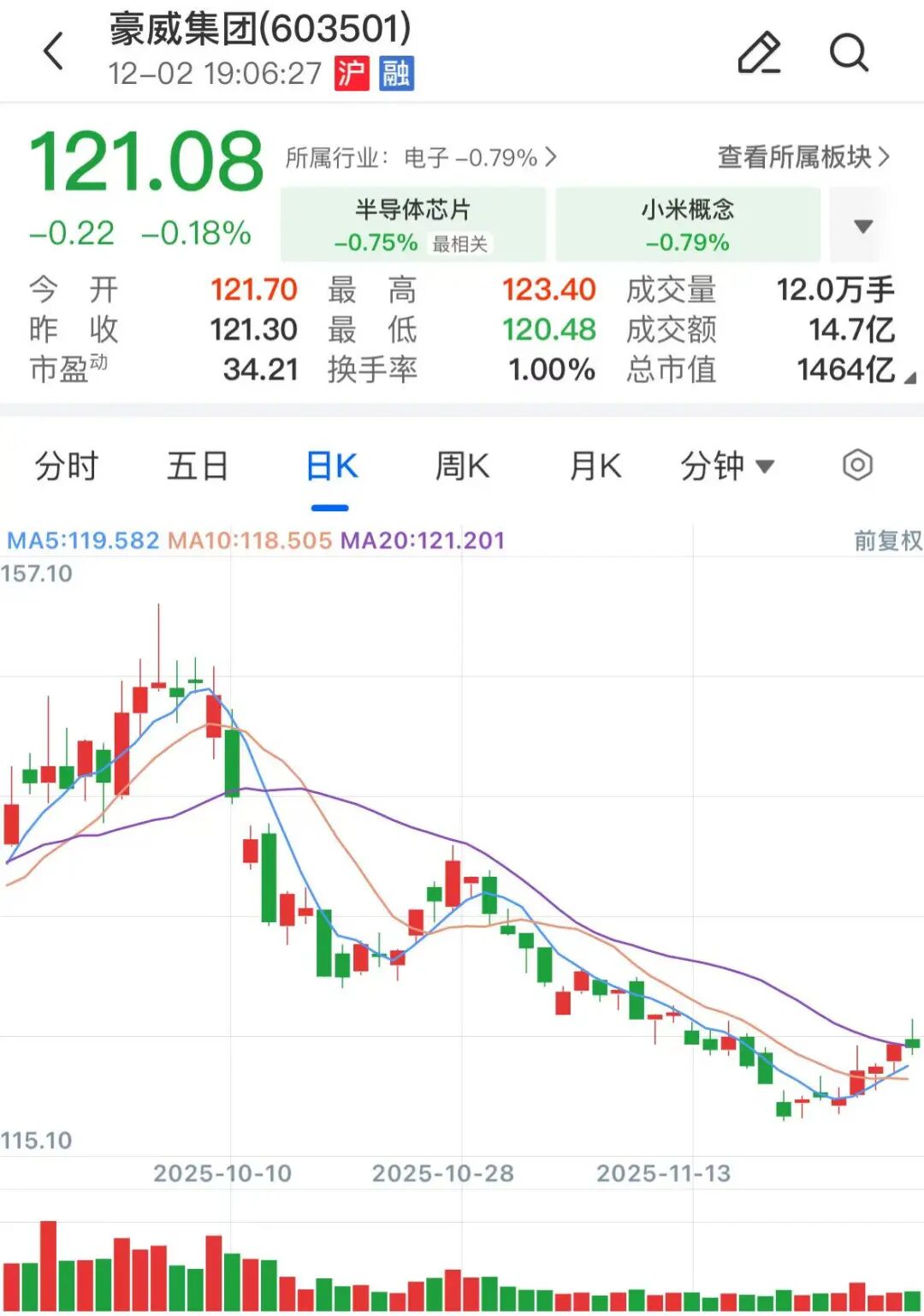 豪威集团今日报收121.08元/股,据此估算,本次虞仁荣及虞仁荣教育基金会捐赠的股份对应市值超37亿元,其中虞仁荣捐赠股份对应市值约36亿元。